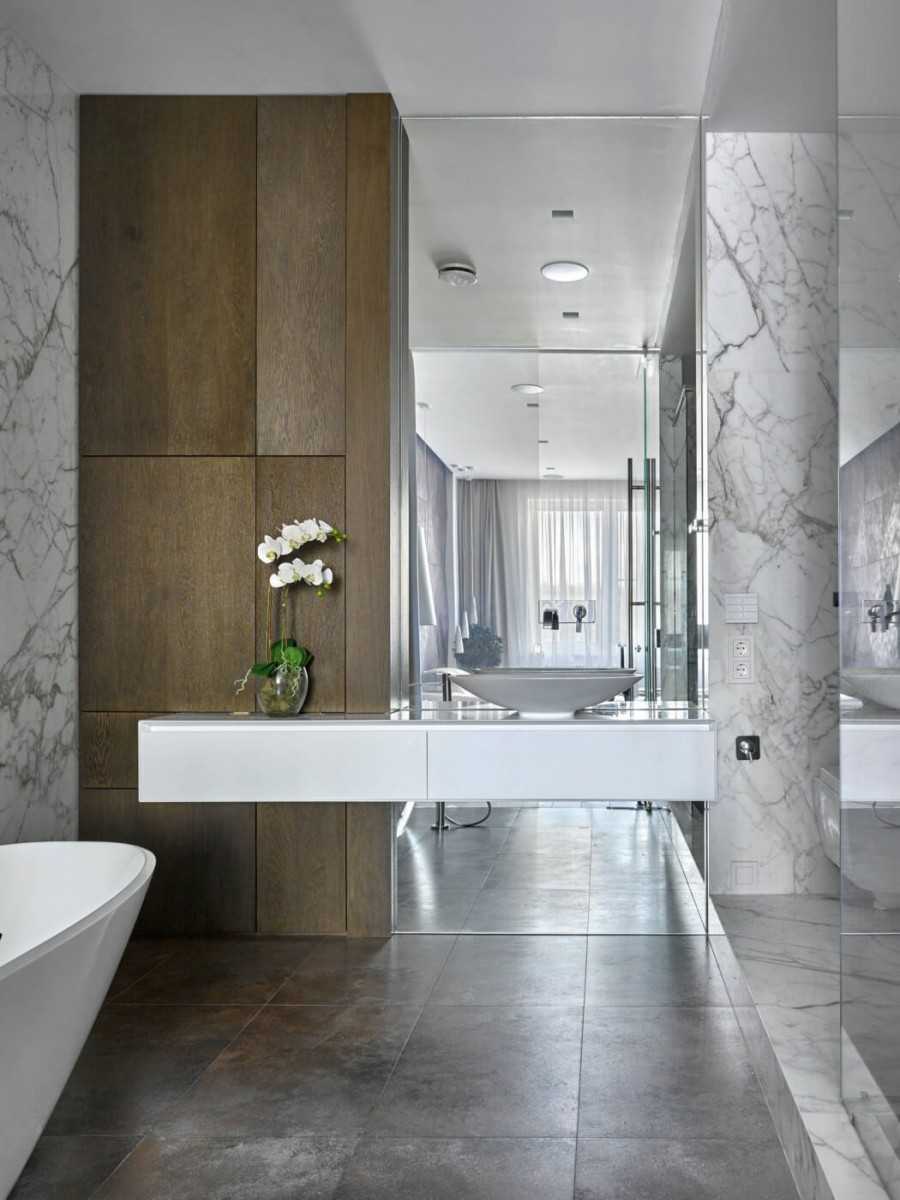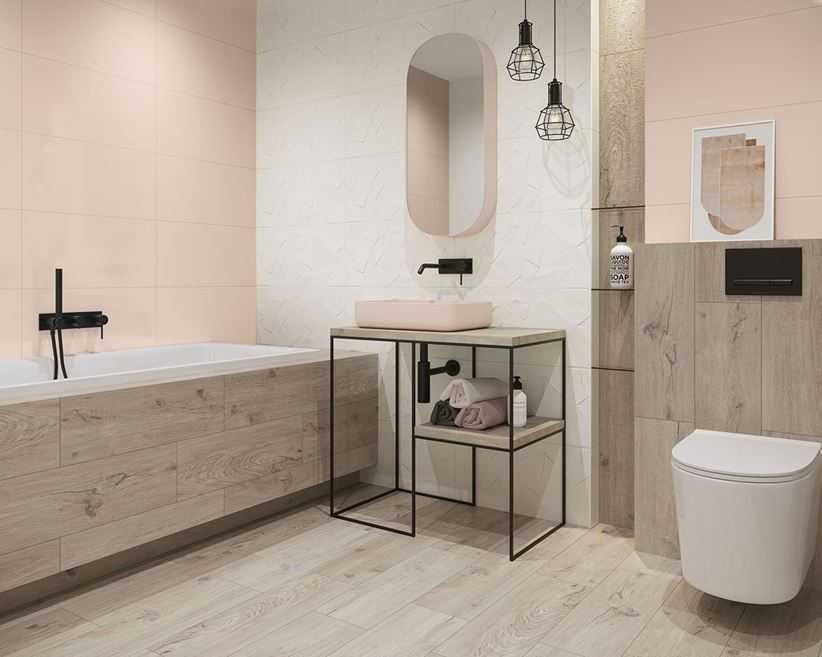 Удачное комбинирование материалов в интерьере ванной комнаты