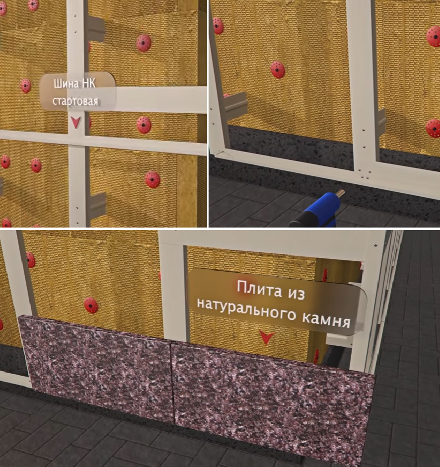 - Финишный этап монтажа – крепление камня к профилям.