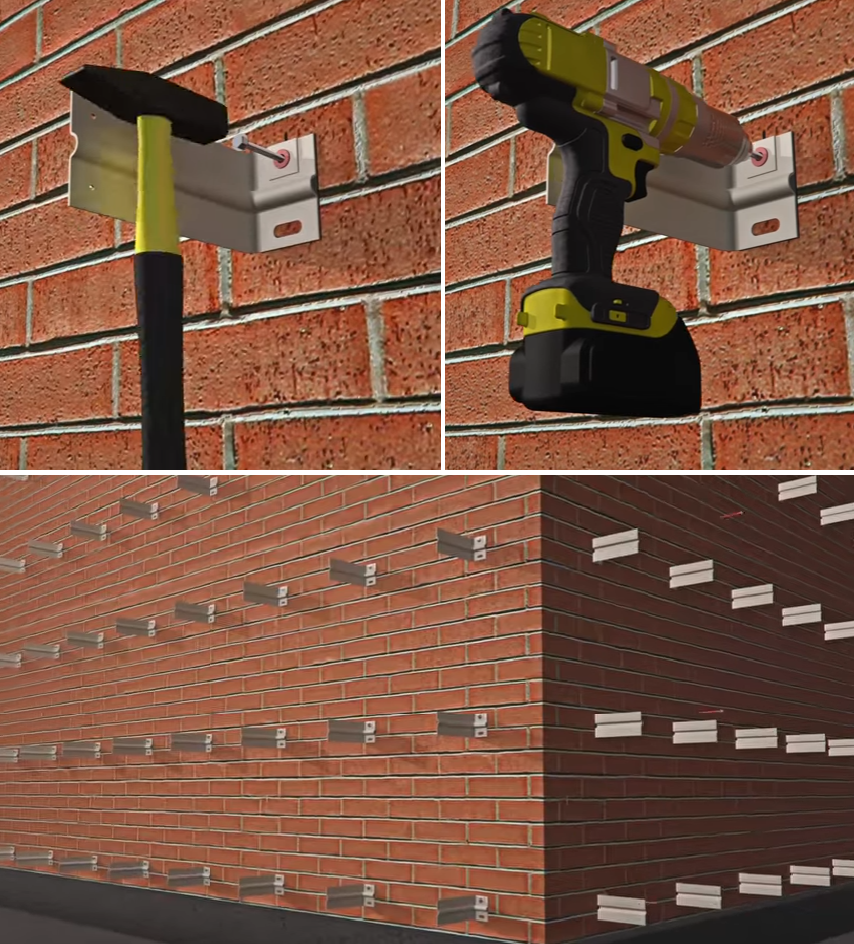 Шаг 3. Устанавливают кронштейны с помощью дюбелей.