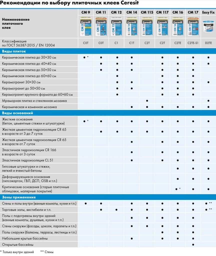 Рекомендации по выбору плиточных клея Ceresit