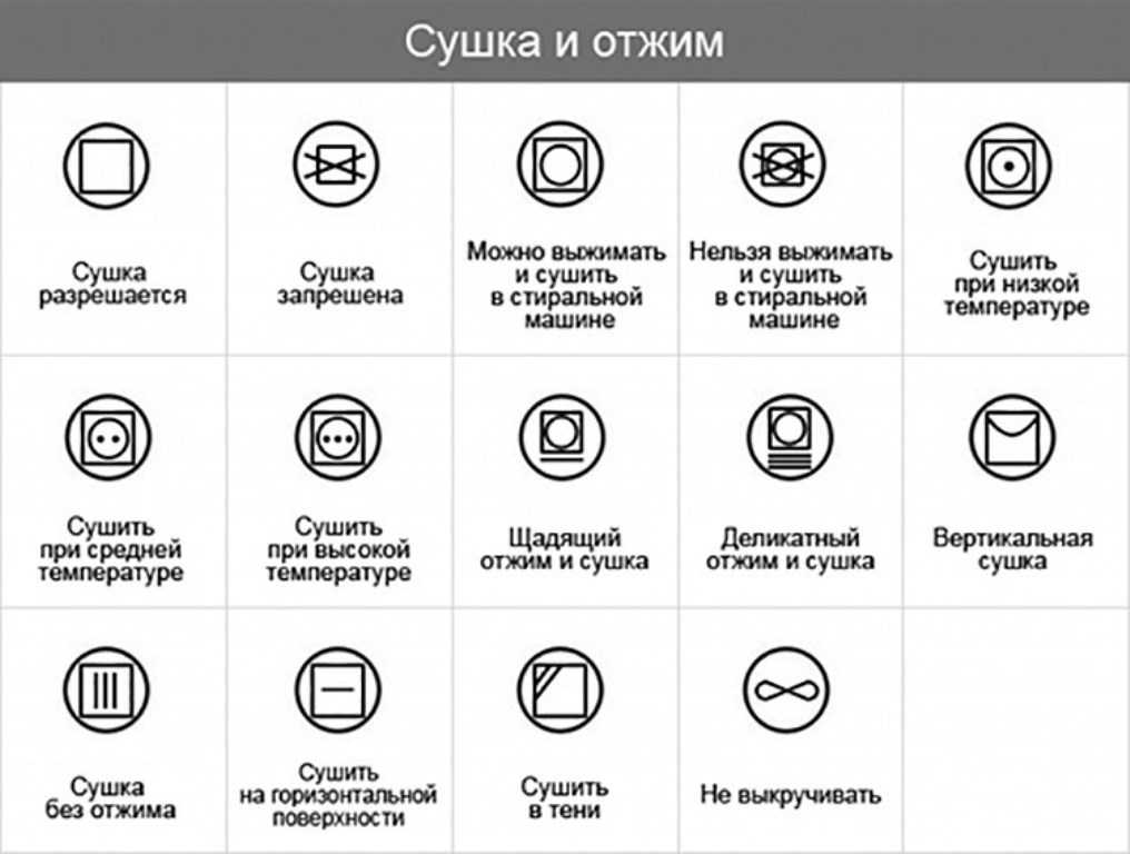 В этой части обзора вы сможете увидеть таблицу с расшифровкой значков на одежде, относящихся к отжиму
