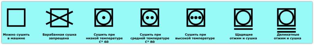 - пустой круг в квадрате – отжим и сушка в сушильном аппарате разрешены;