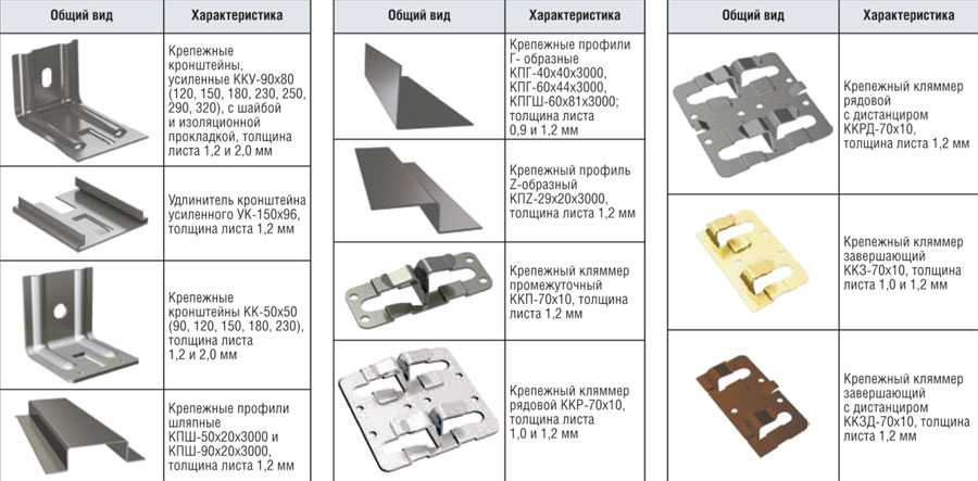 - Устройство крепежа — открытая (зажимы, которые после установки на конструкцию частично из неё выглядывают) или закрытая — стальные вставки, крепящиеся на пересечении поперечин со стойками — система крепления.