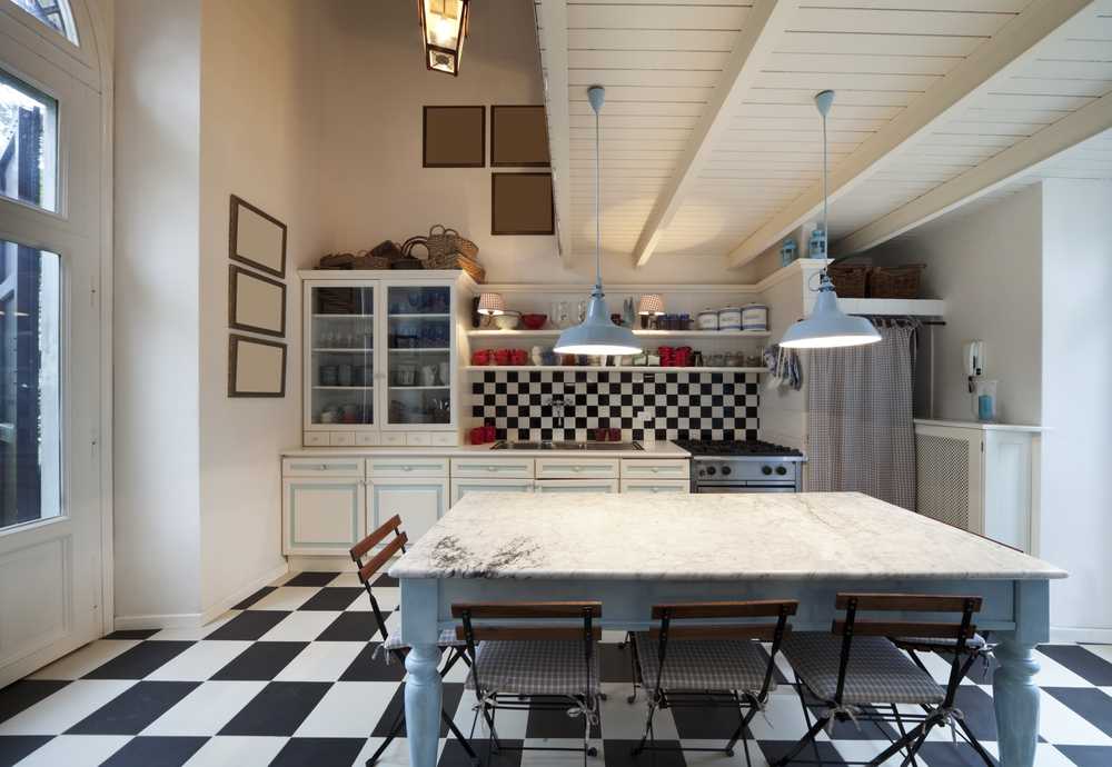 Классический интерьер в просторной светлой кухнеИсточник sdelai-lestnicu.ru