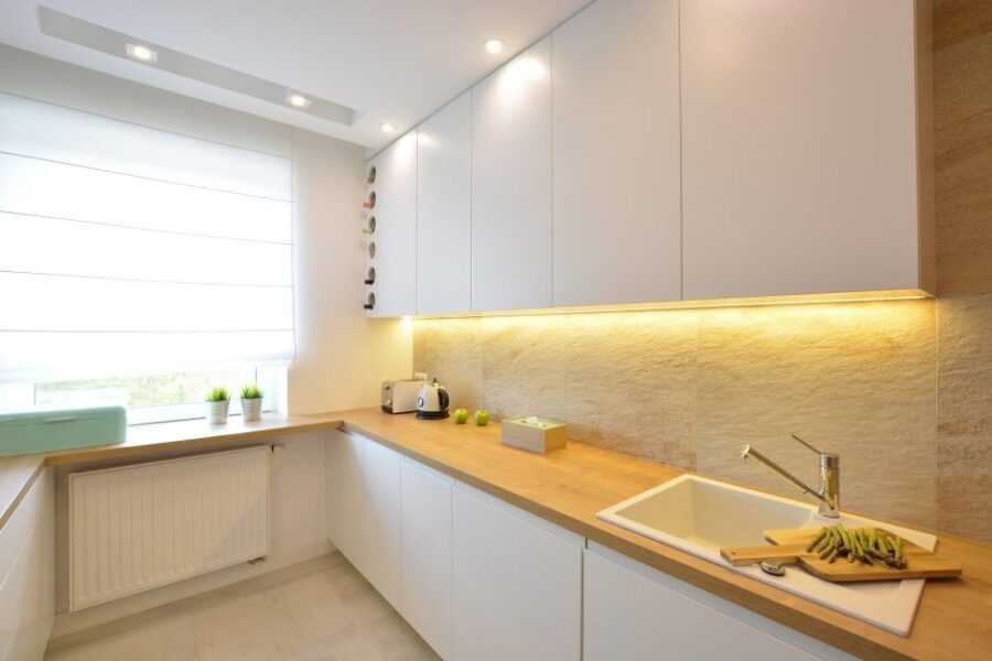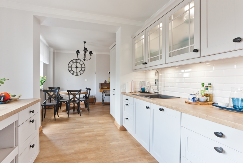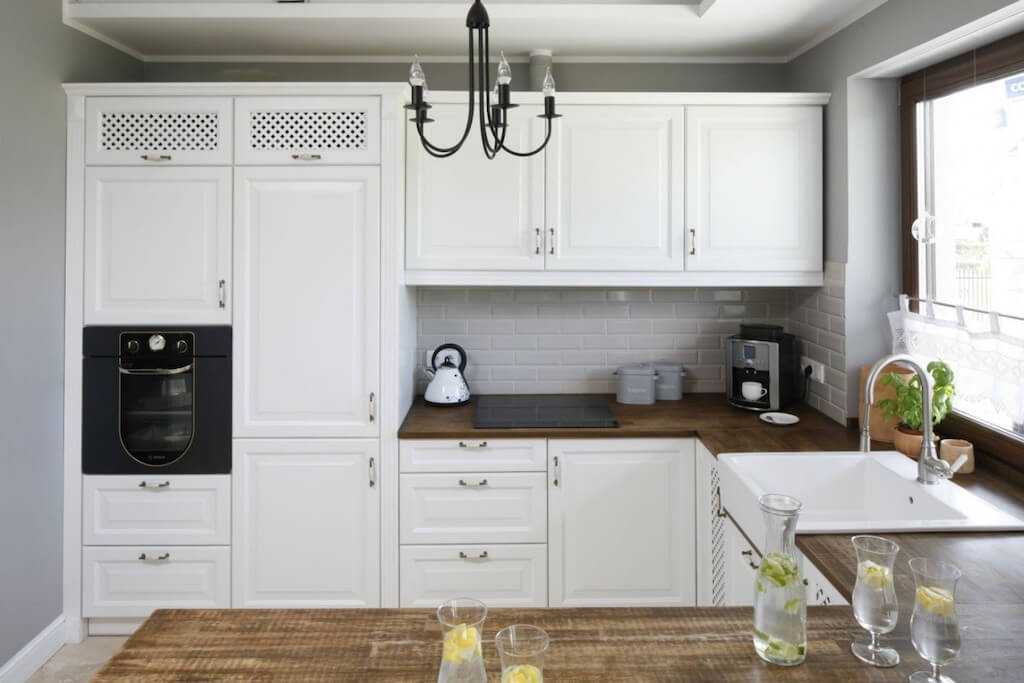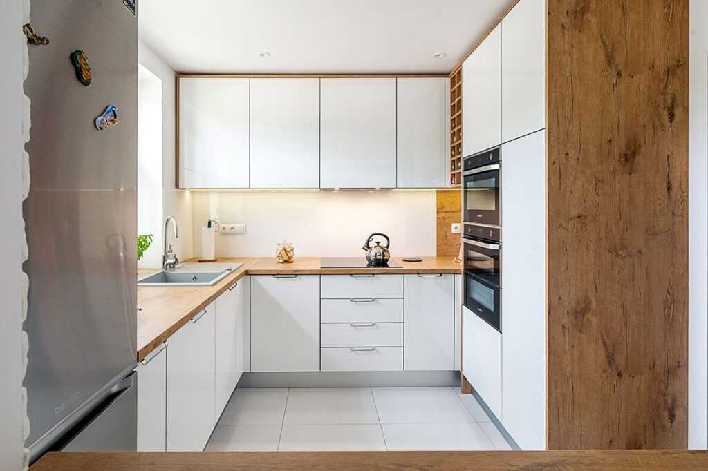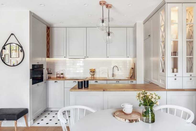 Белая кухня с деревянной столешницей – к какому стилю она подходит?