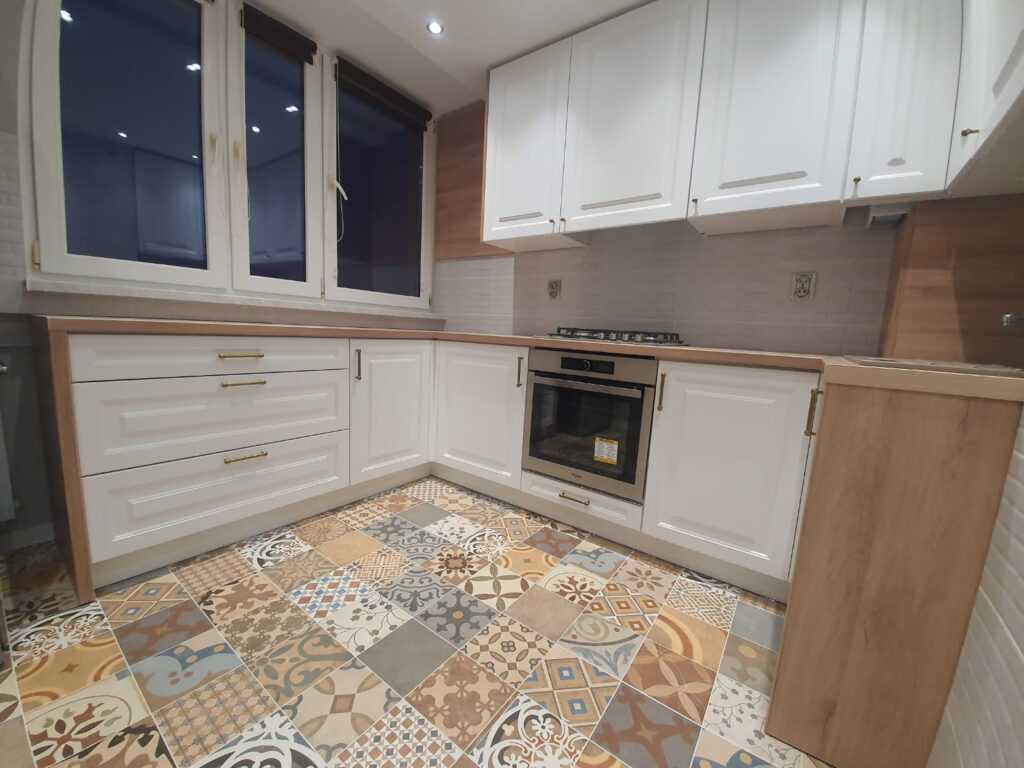 Матово-белая кухня с деревянной столешницей или глянцевая?
