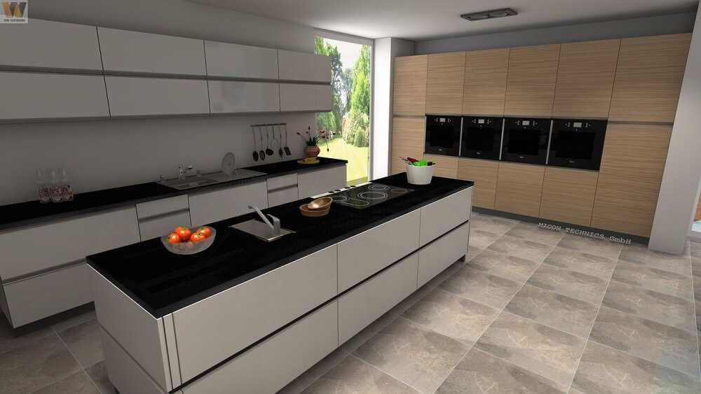 Данный вариант обустройства интерьера больше подходит для просторных или среднего размера помещений. На маленькой кухне он не будет выглядеть так эффектно, и сделает ее еще более тесной.