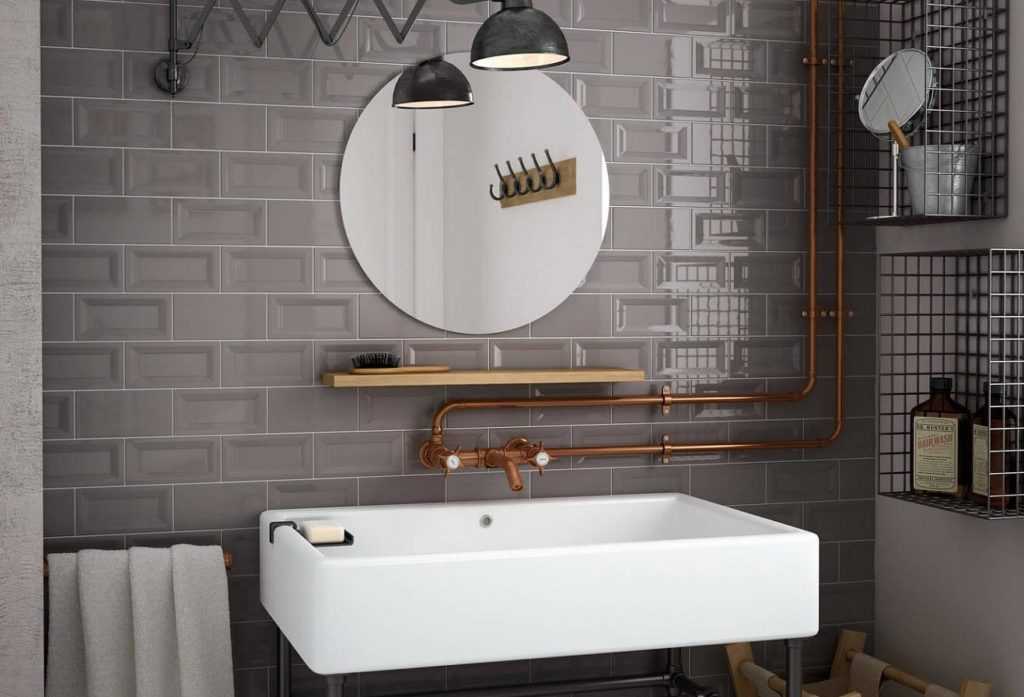 Касаемо приборов освещения выбирать нужно плитку так, чтобы она сочеталась с ними. Это могут быть точечные светильники встраиваемого типа или настенные бра, варианты с отражателями, и даже лента, которую прячут за зеркало