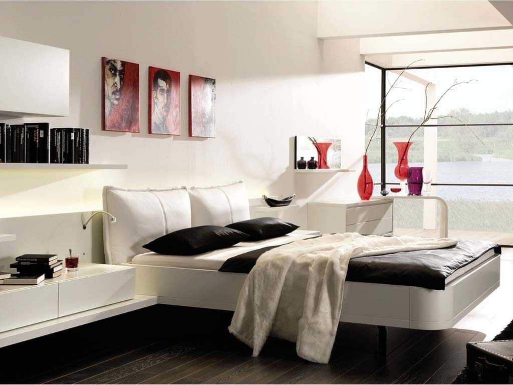Спальня в черно-белых тонах с яркими акцентами на фото смотрится привлекательно. Если стены здесь однотонные, можно повесить на них картины, различные оригинальные семейные фотографии. Можно рассматривать для себя и другие предметы, допустим, для создания ярких акцентов подойдут люстры, декоративные вазы и статуэтки.