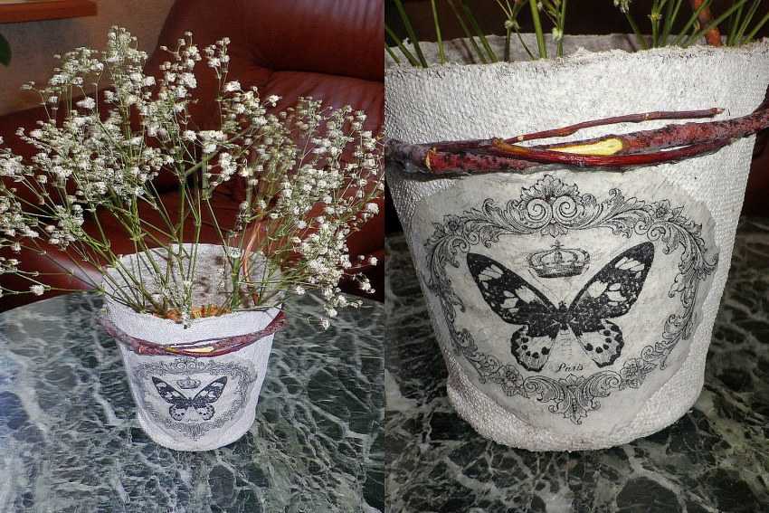 Вариант декоративного покрытия для цветочного горшкаИсточник vdome.club