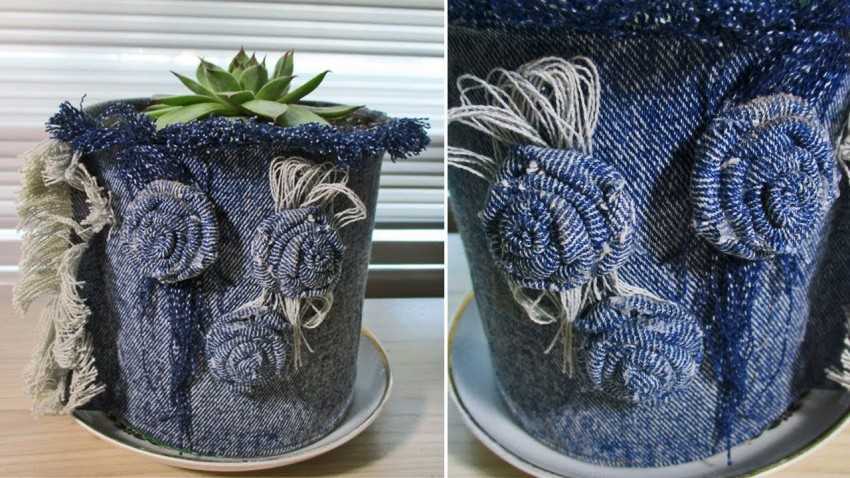 - Этот метод не изменяет формы горшочка, но делает его более уютным и теплым.