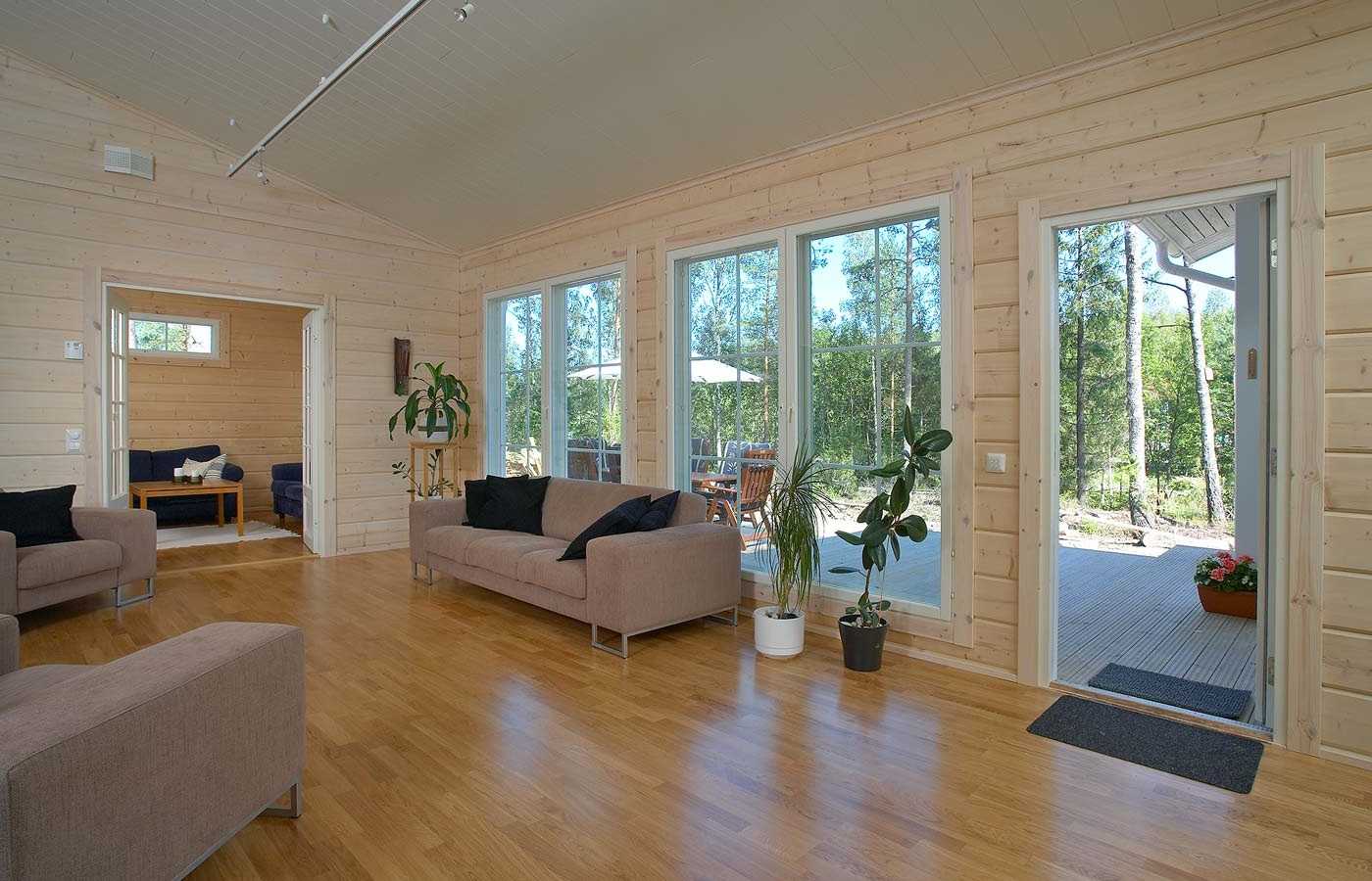 Оформление гостиной на даче начинается с демонтажа старой отделки и выбора новых отделочных материалов. Они должны отвечать требованиям: