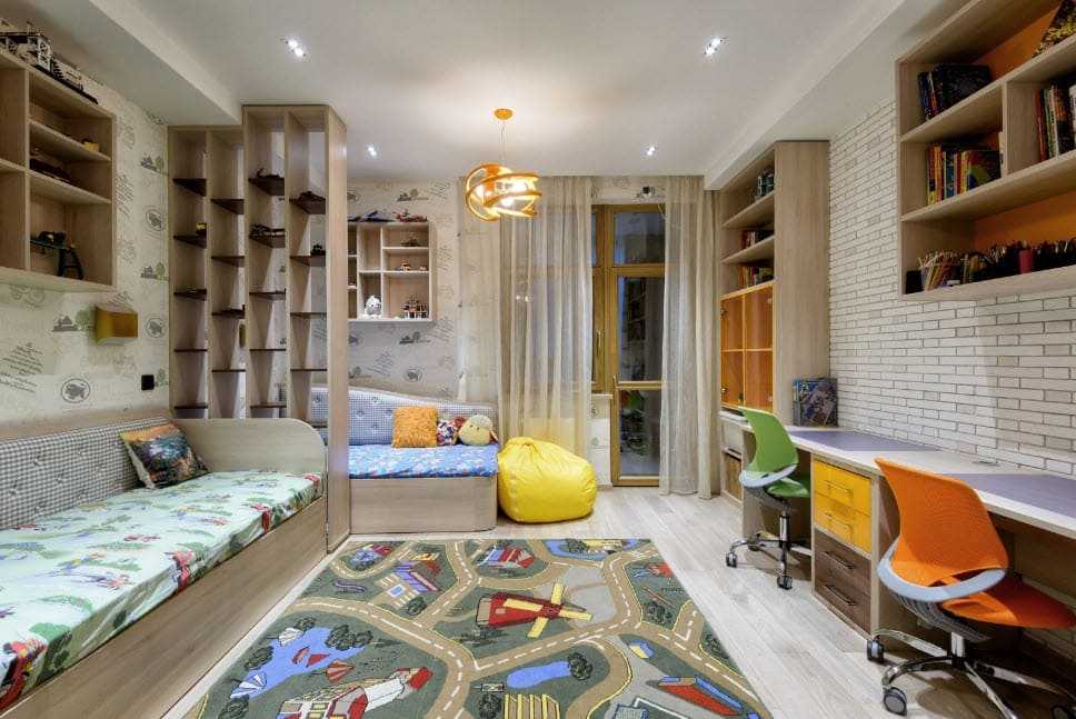 Например, подросток не обойдется без шкафа для одежды, книжных полок и рабочего уголка. Кроме того, нужно подумать о системах хранения, модульных конструкциях. Если в семье несколько детей, то не обойтись без многоярусной мебели, подиумов и перегородок. При выборе отделочных материалов следует использовать натуральное сырье. Цветовая гамма, стилевое решение и декор – это все выбирает ребенок.