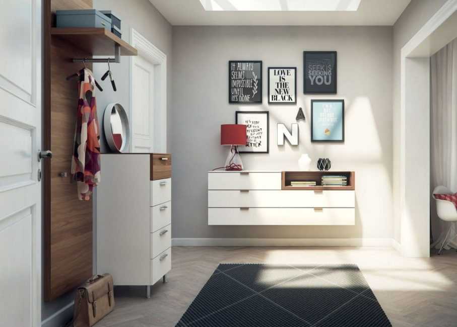 Четкое зонирование помещения на входную и проходную зону. Зонирование может быть выполнено при помощи различных отделочных материалов (у входной двери на полу положите плитку, а дальше по коридору пол застелите ковролином или смонтируйте ламинатное покрытие), нескольких точек освещения, соответствующей меблировки.