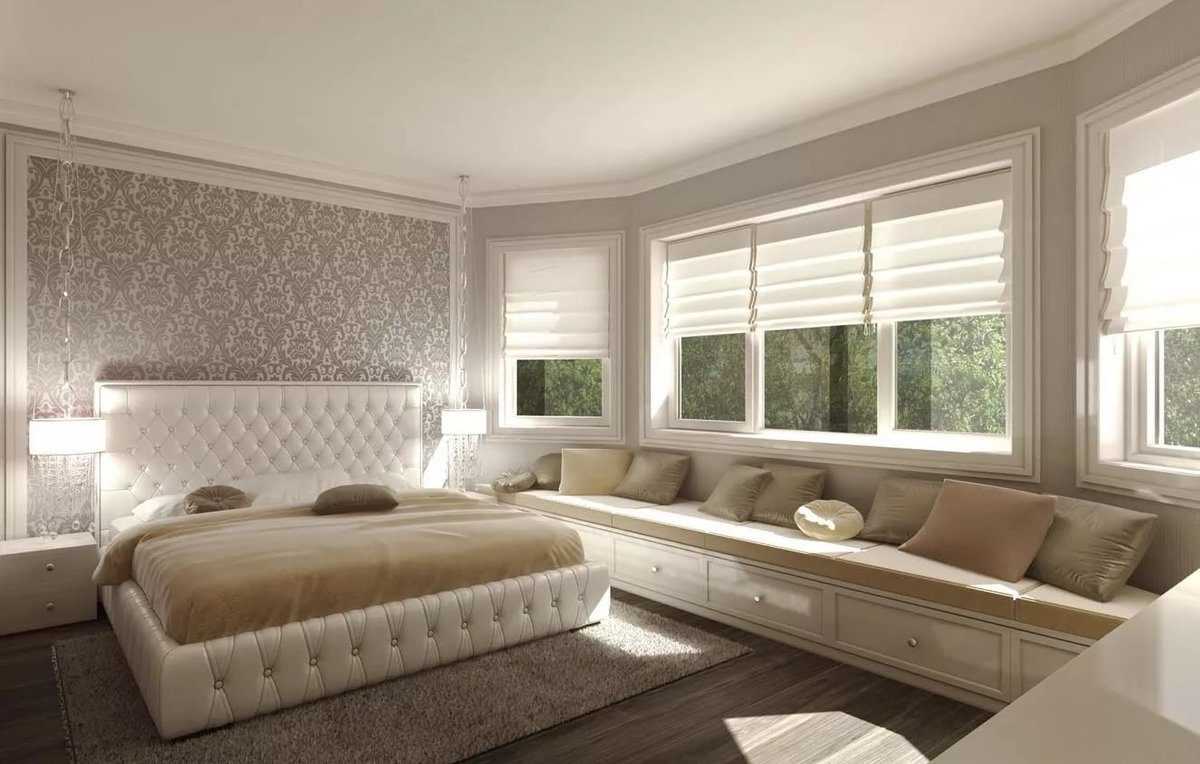 Для спальни больше всего подойдут спокойные, нейтральные тона – белый, серый, голубой, оливковый, бежевый оттенки. Если помещение большое и оно зонировано, тогда стоит использовать разнообразные цвета что поможет визуально разделить помещение на зоны.