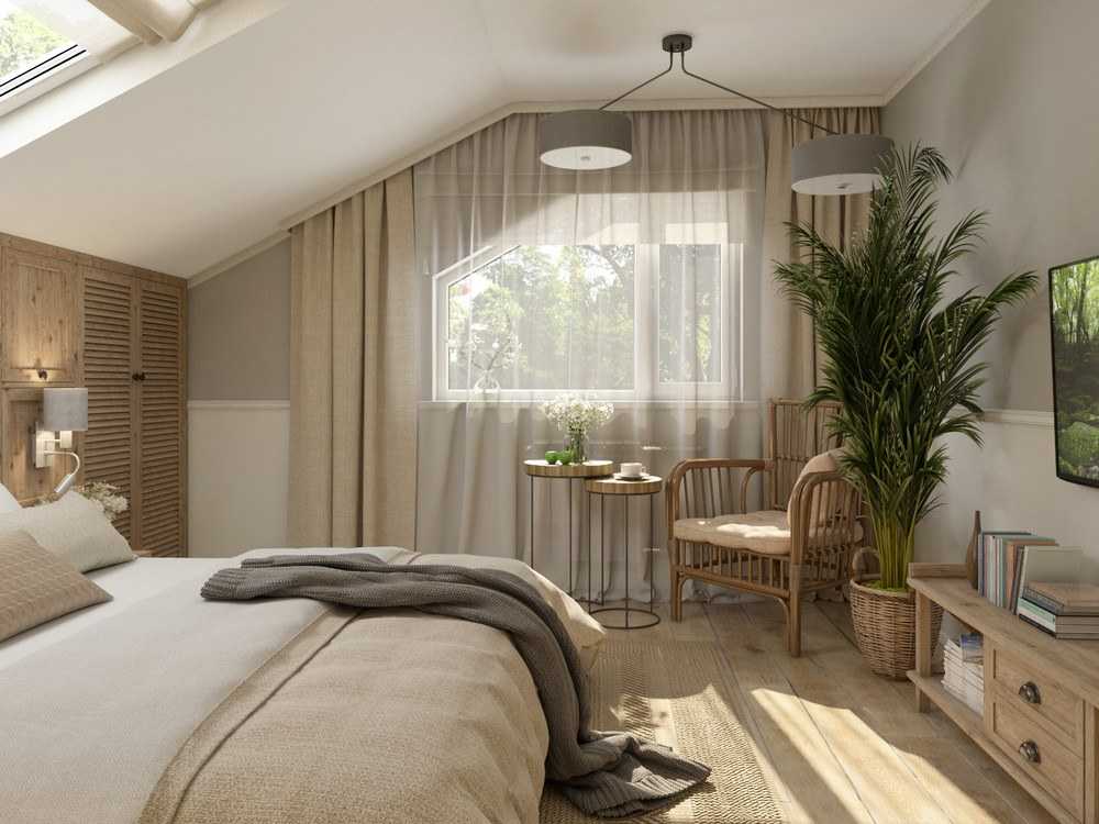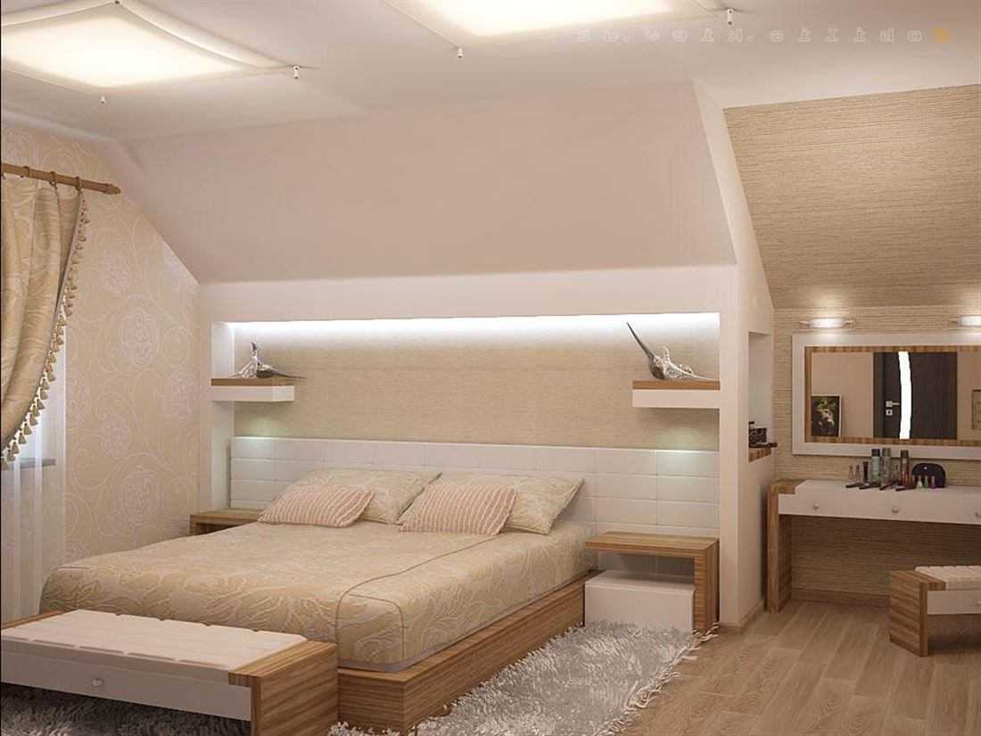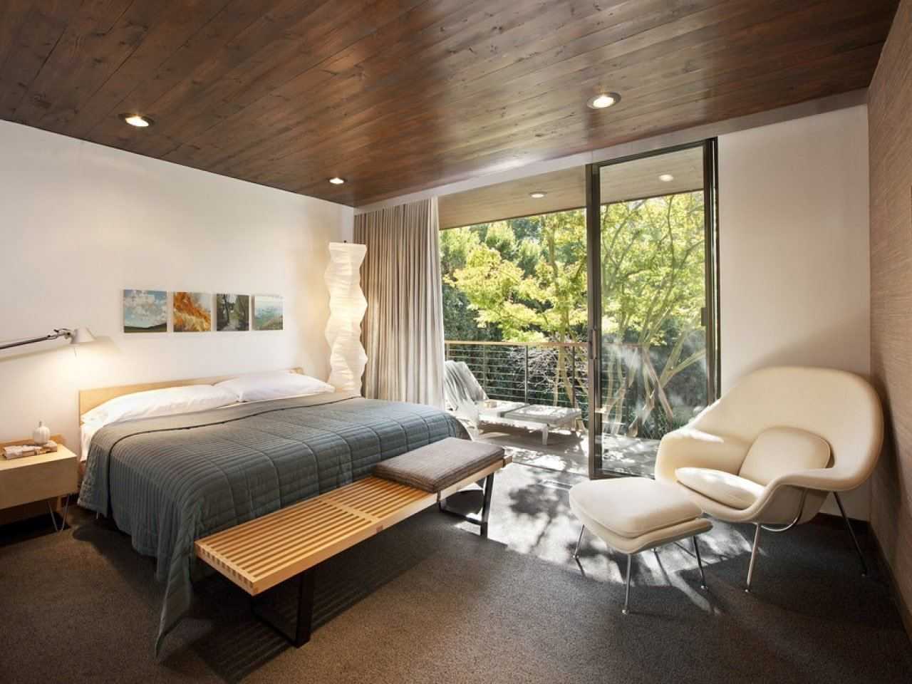 Дизайн спальни в частном доме вдали от гостиной и кухни
