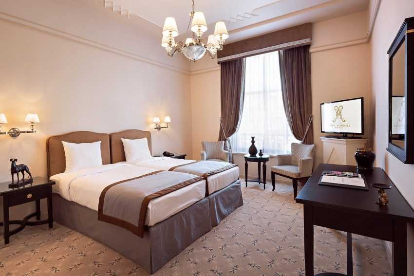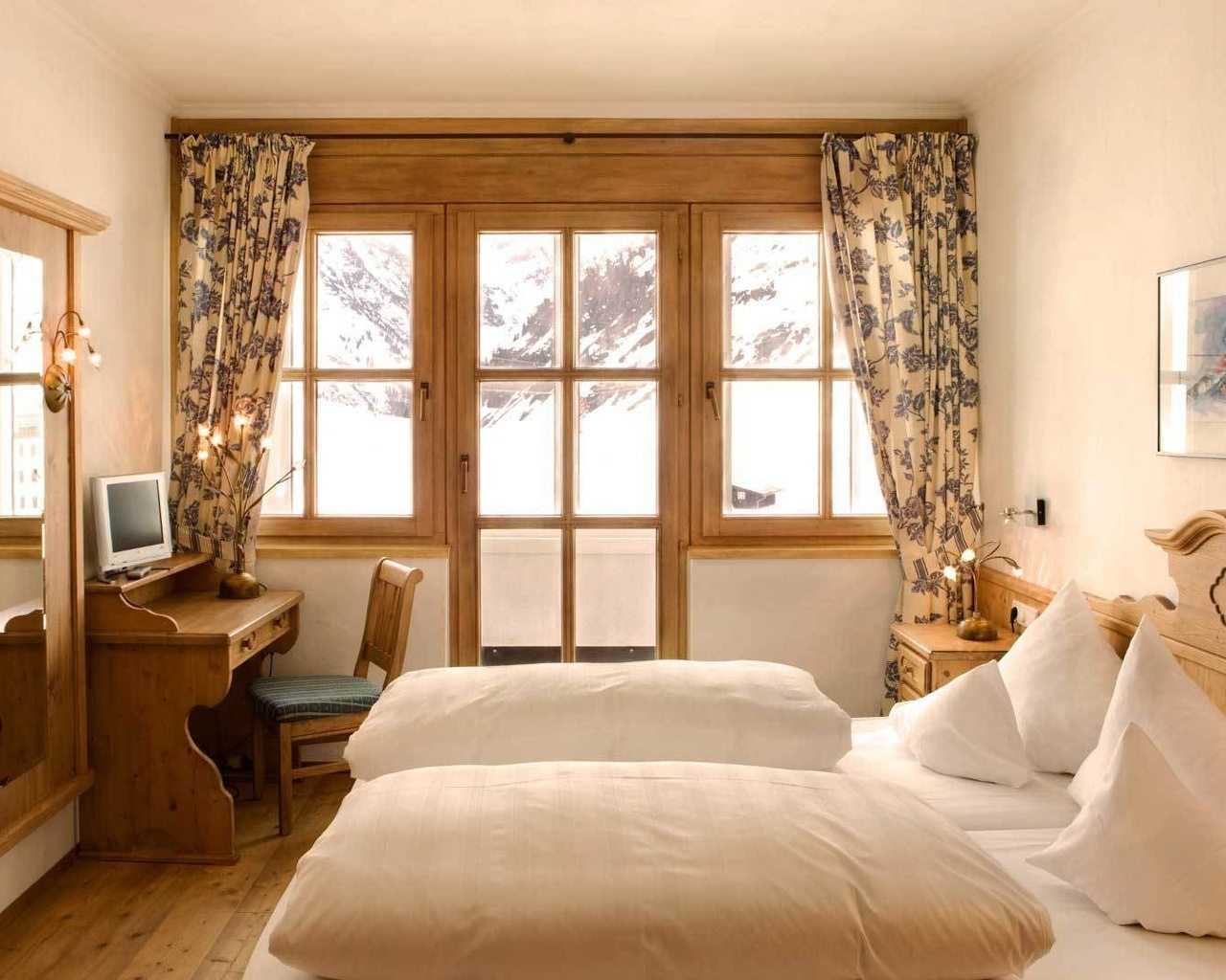 Занавески стараются подбирать в тон стен или мебели, предпочтение лучше отдать однотонным полотнам. Чтобы удовлетворить все запросы будущих постояльцев, подбирают многослойные шторы, состоящие из прозрачного тюля и плотных портьер.