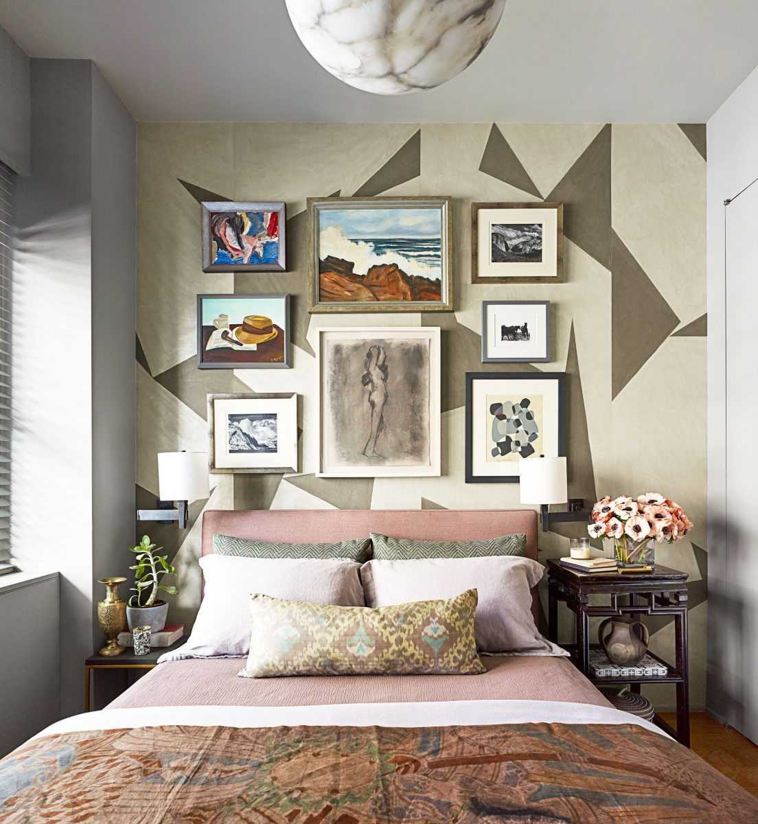 Выгодно акцентировать внимание на интерьере спальни можно с помощью обоев с фото печатью. Геометрические принты и различные сюжетные изображения в формате 3D позволяют подчеркнуть стиль помещения