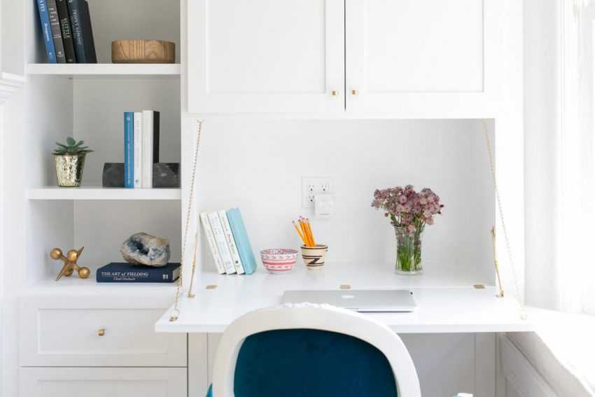 Если спальня невелика, но в ней нужно найти уголок для рабочего стола, то выходить из положения придется за счет рациональной меблировки. В комнате должно появиться лишь то, что необходимо, причем в многофункциональном варианте. Если это шкаф – то модель «купе», если стол – то откидной или угловой, если подиум – то с системой хранения.