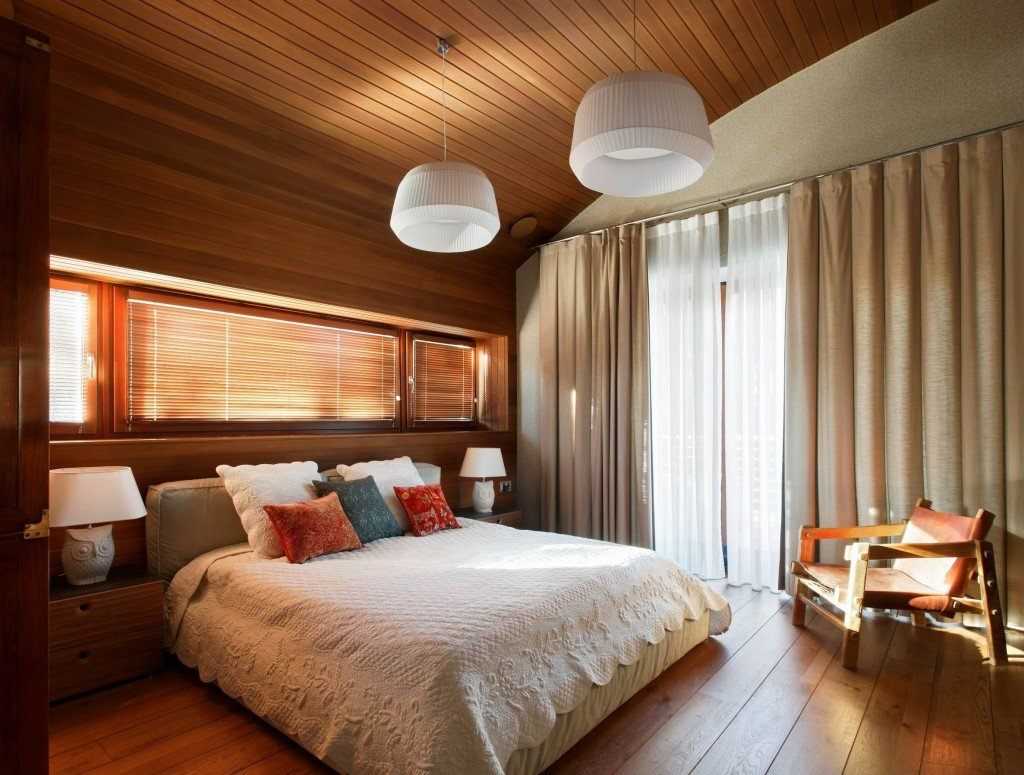 Более детальное внимание следует уделить внутренней отделке стен. Для спальни следует выбирать теплые, экологически чистые материалы