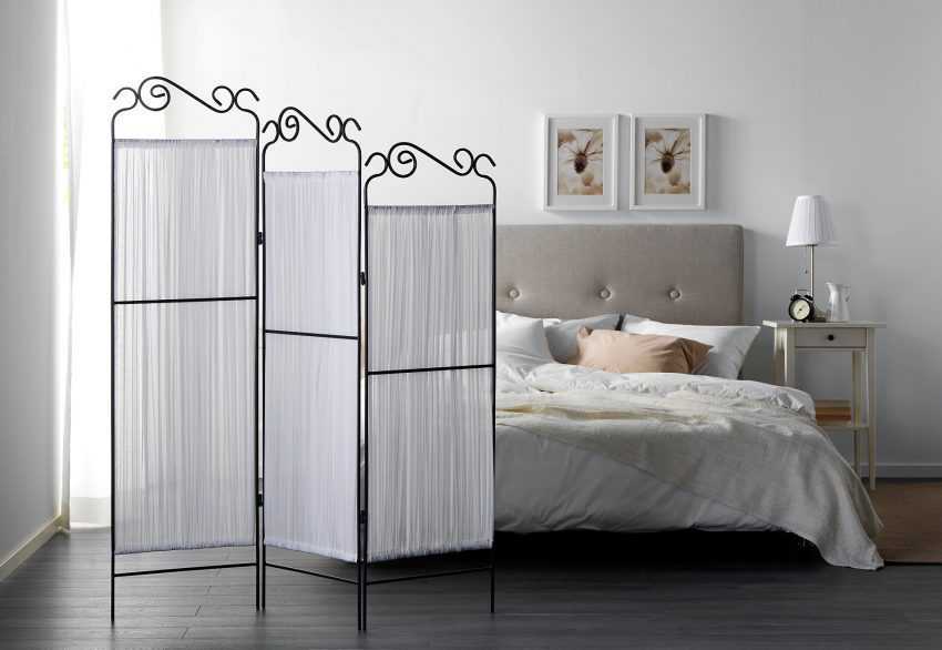 Чаще всего вместо межкомнатных стен используются перегородки: статичные, раздвижные, складные или даже мобильные передвижные. Для изготовления используется гипсокартон, стекло, дерево, текстиль. В сложную каркасную конструкцию можно спрятать систему хранения для вещей, а складные тканевые ширмы привнесут в интерьер японские нотки.