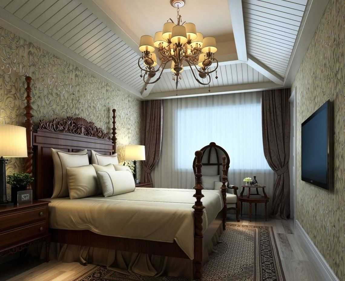 Кроме обоев стены можно отделать деревянными панелями и гипсовой лепниной. Спальное помещение не подвергается воздействию влаги, высоких температур, что позволяет использовать подобные покрытия для отделки.