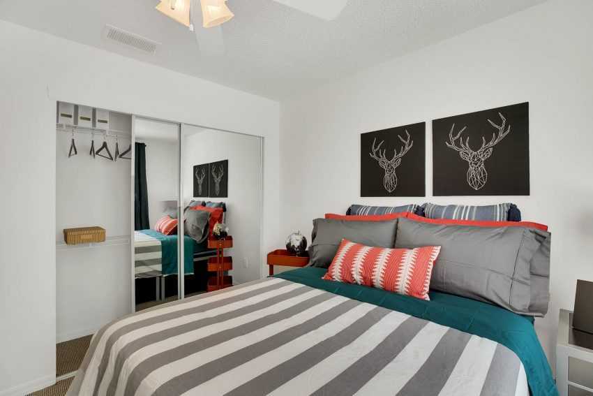Контрастные или яркие вставки, полосы, акцентные стены – все это помогает менять пространство и придает ему индивидуальность. Выраженные вертикали зрительно поднимают потолок, а горизонтальные линии – раздвигают стены. Яркий диван или покрывало вдохнет свежесть в интерьер, красочные постеры создадут атмосферу легкого творческого беспорядка, а зеленый уголок придаст уюта.