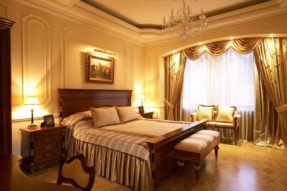В крупногабаритной гостевой комнате будет роскошно смотреться большой светильник, размещенный по центру. Особенно роскошно выглядит роскошная хрустальная люстра с подвесками. Это стандартное устройство для классического направления. Чтобы осветить темнее уголки, дополнительно используются маленькие светодиодные светильники.