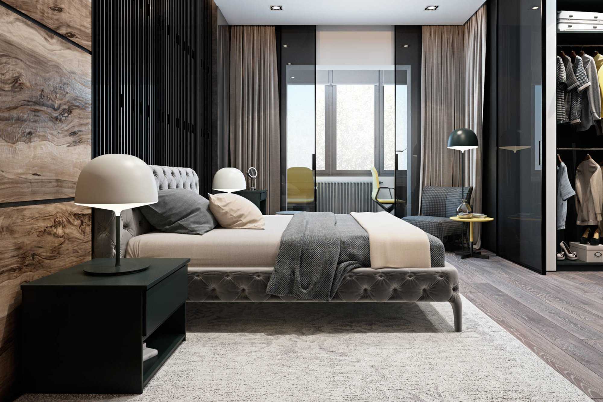 В минималистичной мужской спальне ничего не будет отвлекать от отдыха. Сдержанные цвета, отсутствие лишних деталей, понятные формы, линии