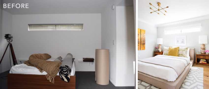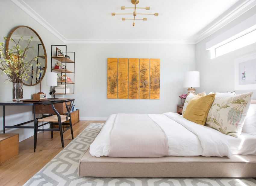 Центральный атрибут каждой спальни. Для того чтобы визуально расширить пространство, можно выбрать модель на небольшом подиуме без ножек. Такой прием поможет сделать кровать практически незаметной в окружающей обстановке и оставить больше воздуха над спальным местом.