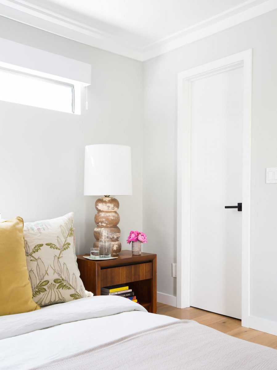 Спальня в деревянном доме с белой стенойИсточник hyperia.ca