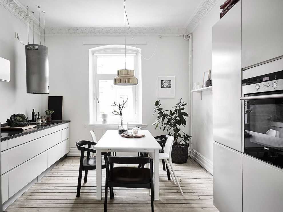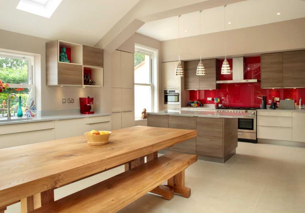 Очень выгодно на кухне использование раздвижной и откидной мебели, например, стола, который из небольшой конструкции с легкостью трансформируется во вместительную модель. В данной комнате можно оборудовать отдельную подсветку над рабочей поверхностью, повесить люстру или несколько плафонов над обеденным столом.