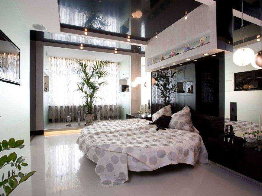 В качестве осветительных приборов, для того, чтобы подчеркнуть необычные узоры, используют подсветку или светодиодную ленту. Также можно выделить натяжные потолки с 3-д эффектом, которые прекрасно впишутся в интерьер в современном стиле. Главное тут – соблюдать баланс, а также разбавлять интерьер стеклянными, затемнёнными и глянцевыми поверхностями.