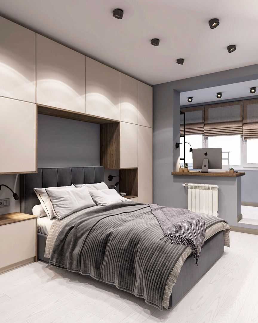 Если из комнаты есть выход на лоджию или балкон – её/его площадь можно присоединить к жилому пространству, повысив тем самым его функциональность. Спальня 14 кв. м. с балконом открывает значительно больше возможностей для дизайнера.