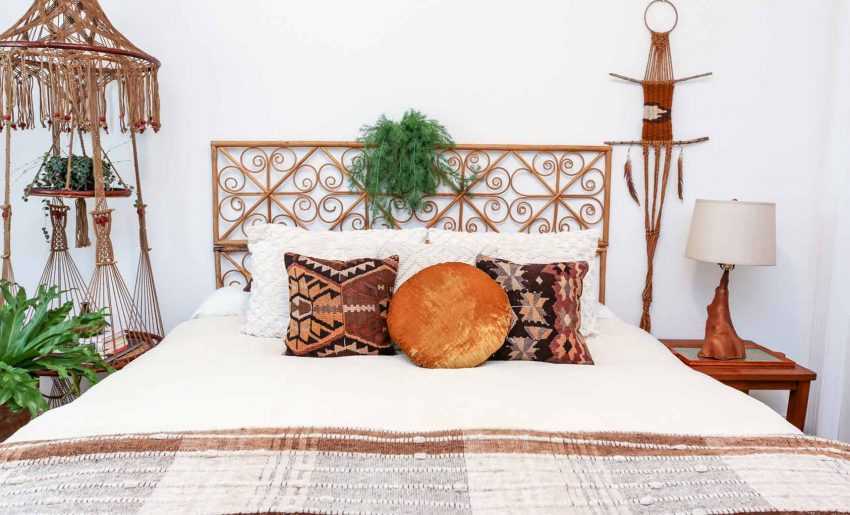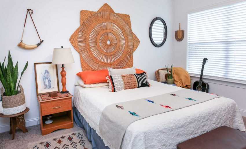 Оптимальный размер для двуспальной кровати – 1,6 м на 1,8. Если хочется, то можно поставить и кровать большего размера, например, 2*2 м. С подголовником или без – выбор также индивидуальный. Если при покупке в конструкции спального места они не предусмотрены, то можно заменить их стеновыми панелями.