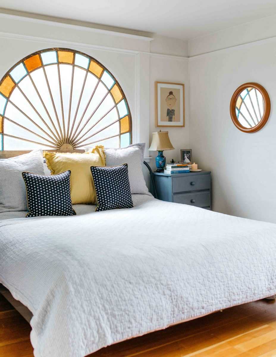 В спальне желательно использовать раздвижные шторы на окнах. Украсят эту зону и простые прямые занавески. Окно также можно завесить подъемными шторами, удобными и функциональными. С их помощью можно регулировать освещение в комнате.