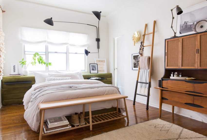 - Добавит опочивальне теплоту и уют некоторые деревянные элементы.