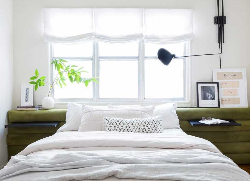 Интеграция пространства, также известная как концепция открытого пространства, является хорошим способом устранения давящего чувства, которое может возникнуть в небольшом замкнутом пространстве. Можно использовать приподнятую кровать, под которой достаточно места для хранения всех необходимых вещей. Небольшой вертикальный шкаф поможет отделить одну зону спальни от другой.