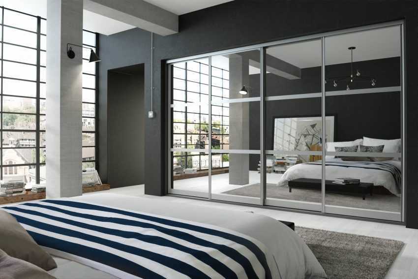 - Шкаф – предполагает хранение вещей. Идеальным вариантом станет шкаф-купе. Присутствие зеркальных дверей в таком шкафу позволит зрительно расширить помещение и обеспечит наличие зеркала. Дизайн маленькой спальни в хрущевке исключает приобретение большого стандартного шкафа стандартной формы.