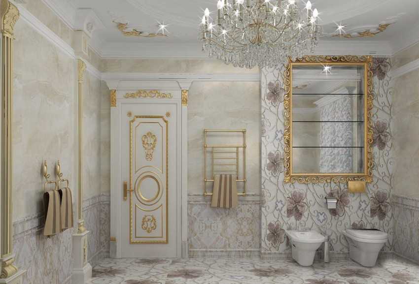 Отделка совмещенного санузла, фото интерьера в классическом итальянском стиле