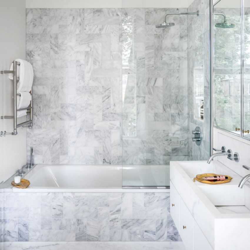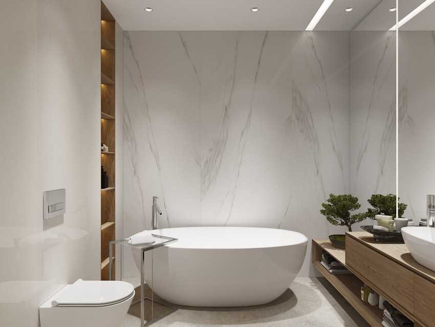 Модная тенденция в оформлении интерьеров ванной — отделка мрамором.