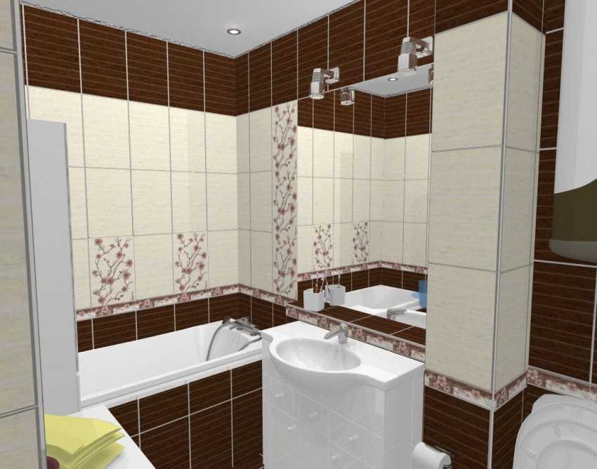 Ремонт совмещенного санузла в хрущевке, зонирование контрастной плиткой