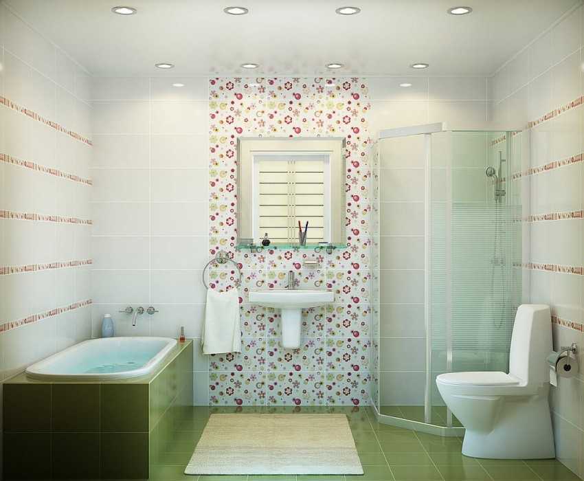 Ремонт совмещенного санузла, оригинальный интерьер с использованием декоративных вставок