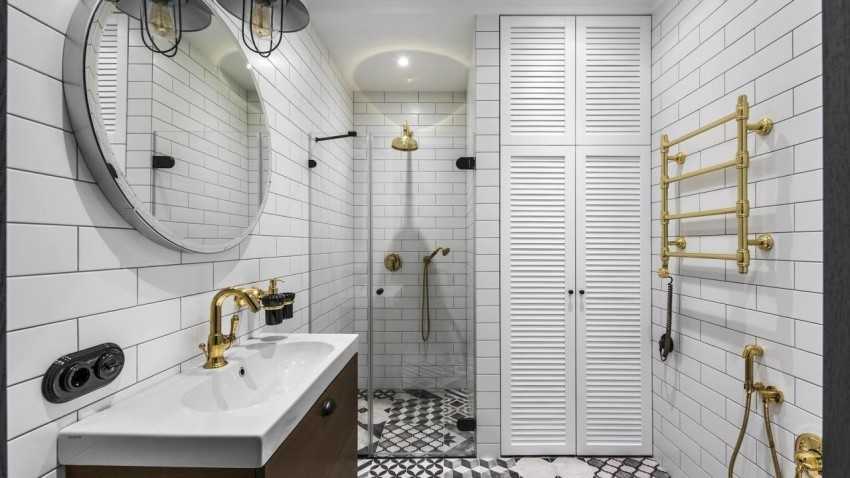 Проблема создания дизайна с удобной и компактной мебелью и сантехникой в хрущевке — ограниченное пространство. В старых домах жители удаляют общую стену, что позволяет увеличить площадь ванной и разместить в ней всю технику.