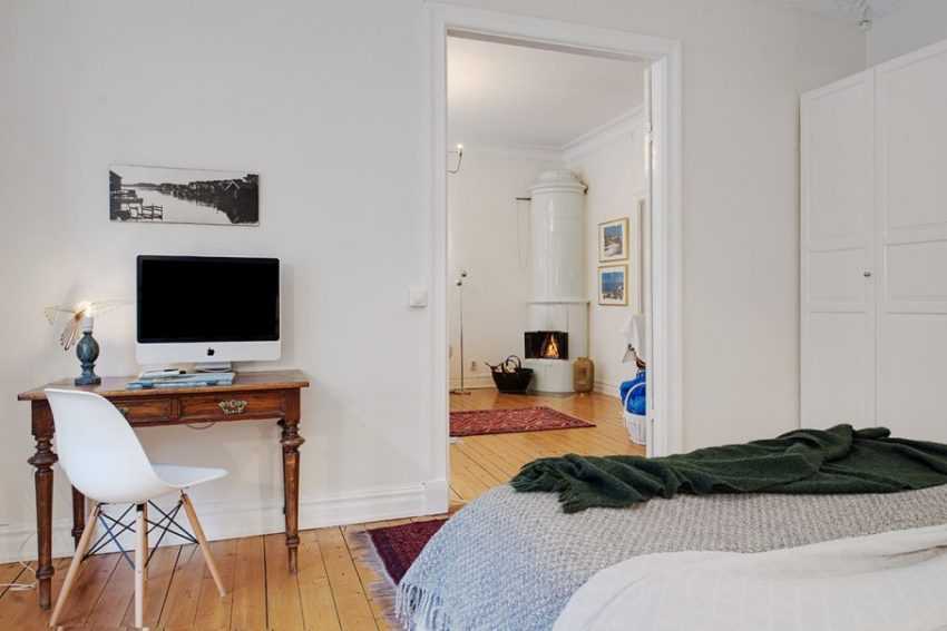 Рабочий или туалетный стол лучше всего почувствует себя у окна для обеспечения необходимого количества дневного света. Если не получается, то рабочий стол следует приспособить для зонирования пространства, разместив его вдоль или поперек стены.