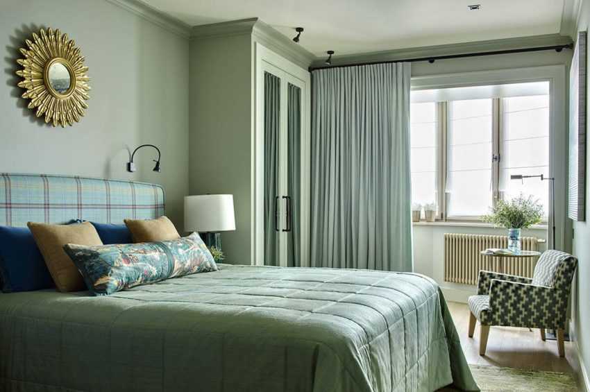 Но вполне красиво и уместно смотрятся интерьеры в светло-мятных тонах, а также спальни с преобладанием мягкого оливкового оттенка. Спокойные нежные цвета создадут ощущение уюта и не скажутся на визуальном восприятии площади пространства.