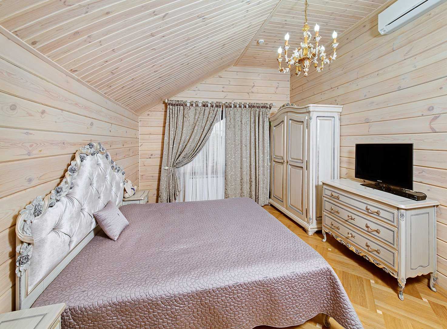 В брусовом доме особое внимание стоит уделять и освещению. В спальне нужно непременно установить искусственные источники света