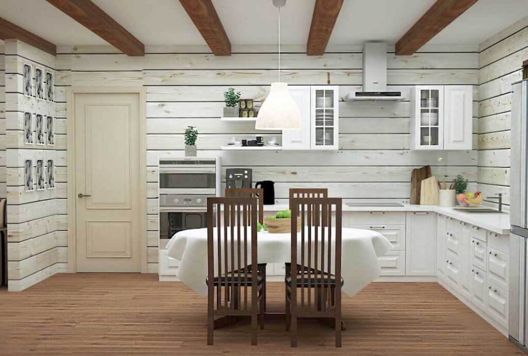 - Усадка дома и подвижность стен. Усадка может продолжаться и несколько лет. Она может повлиять на высоту проемов или навесных элементов. Конечная отделка производится после окончания усадки, иначе могут возникнуть неприятные трещины и другие недостатки. Исключением стали дома из клеёного бруса, поскольку материал уже на производстве высушивается и дает усадку — на таких кухнях ремонт можно начинать сразу.