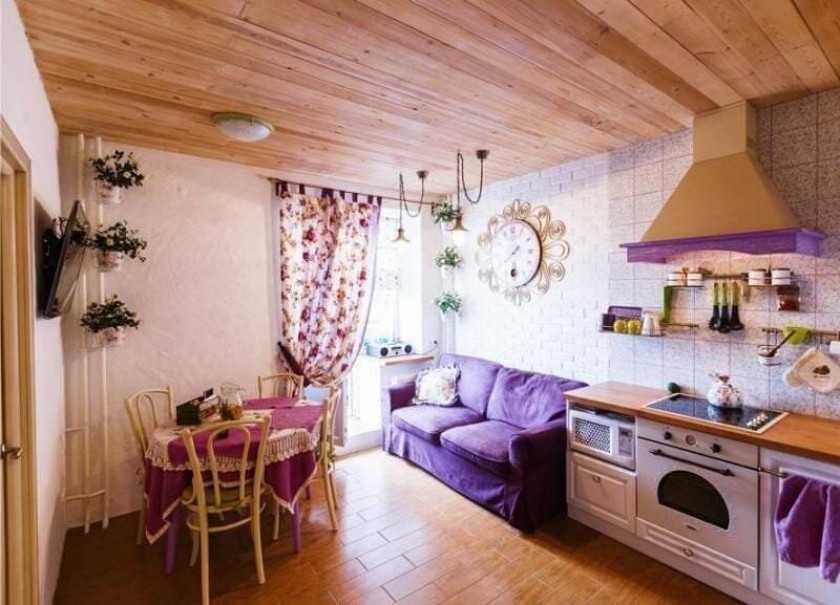 При желании можно придать интерьеру вид охотничьего домика. Кому-то больше по душе стиль прованс с его тягой к светлым тонам и фактуре окрашенного дерева. Такое решение отдает легкостью, оно приятно, стиль французской глубинки отдает оттенком винтажности. Иным нравится стиль бохо с его стремлением к пестроте. В этом случае фоновое оформление стен, потолка обычно смягчает обилие ярких пятен и текстиля, характерных для дизайна.