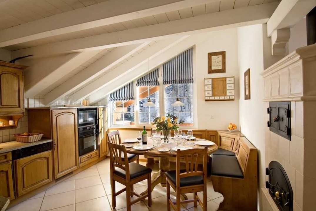 В столовой устанавливается массивный стол и достаточно простые стулья, не выделяющиеся особой роскошью